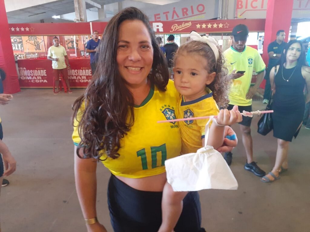 A pequena Júlia de 3 anos está participando da sua primeira Copa e segundo a mãe da menina, Maria Clara, a filha está super animada. “Ela está empolgadíssima, super feliz, nem quis tirar a camisa do Brasil”, contou.