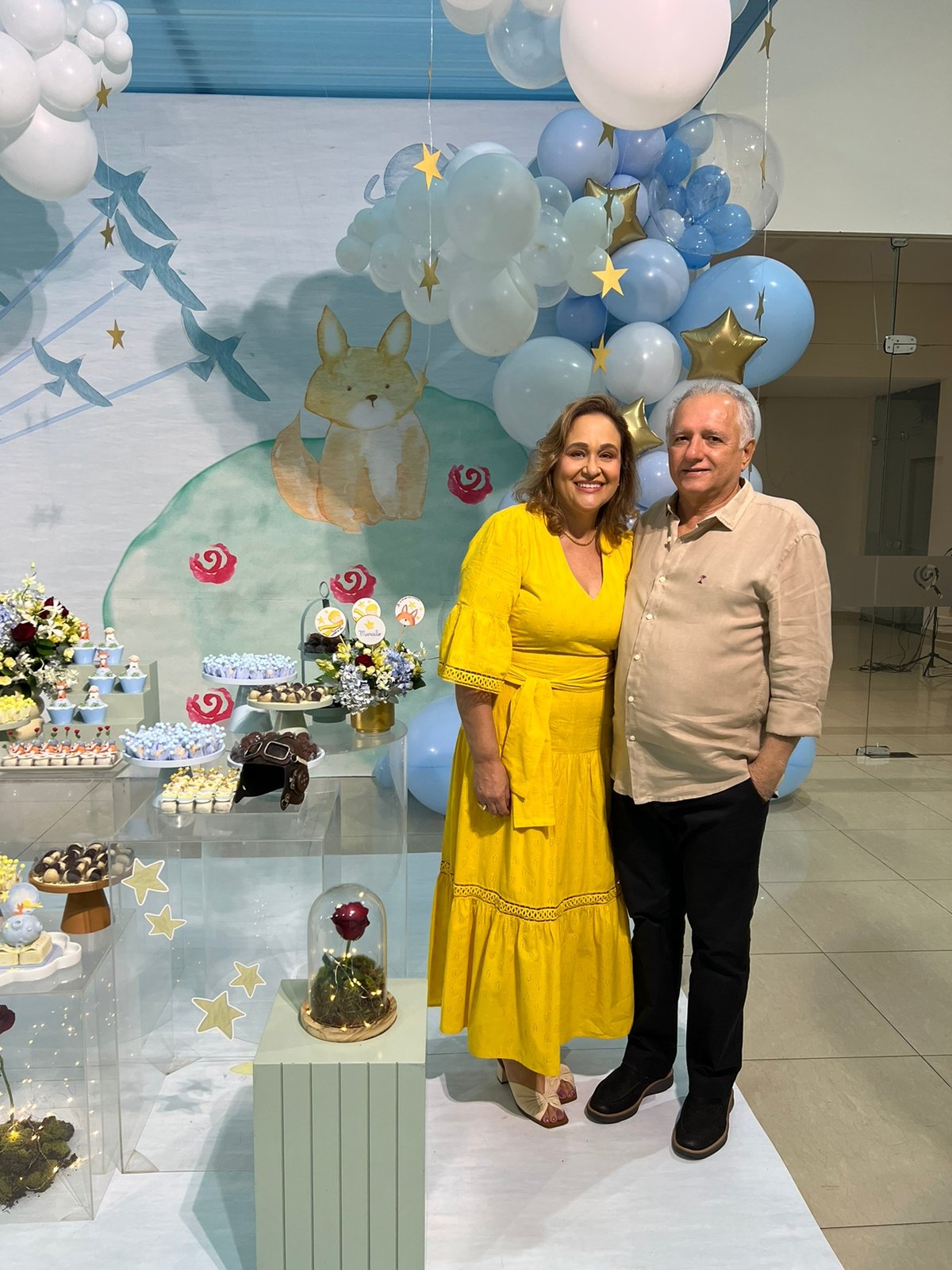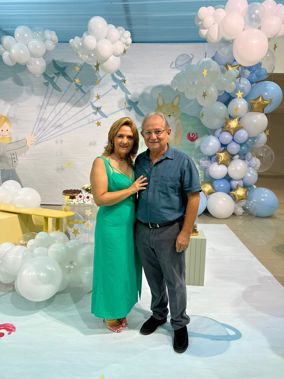 O casal Eduardo Sampaio e Rosa Cláudia Sampaio no aniversário do neto Marcelinho.
