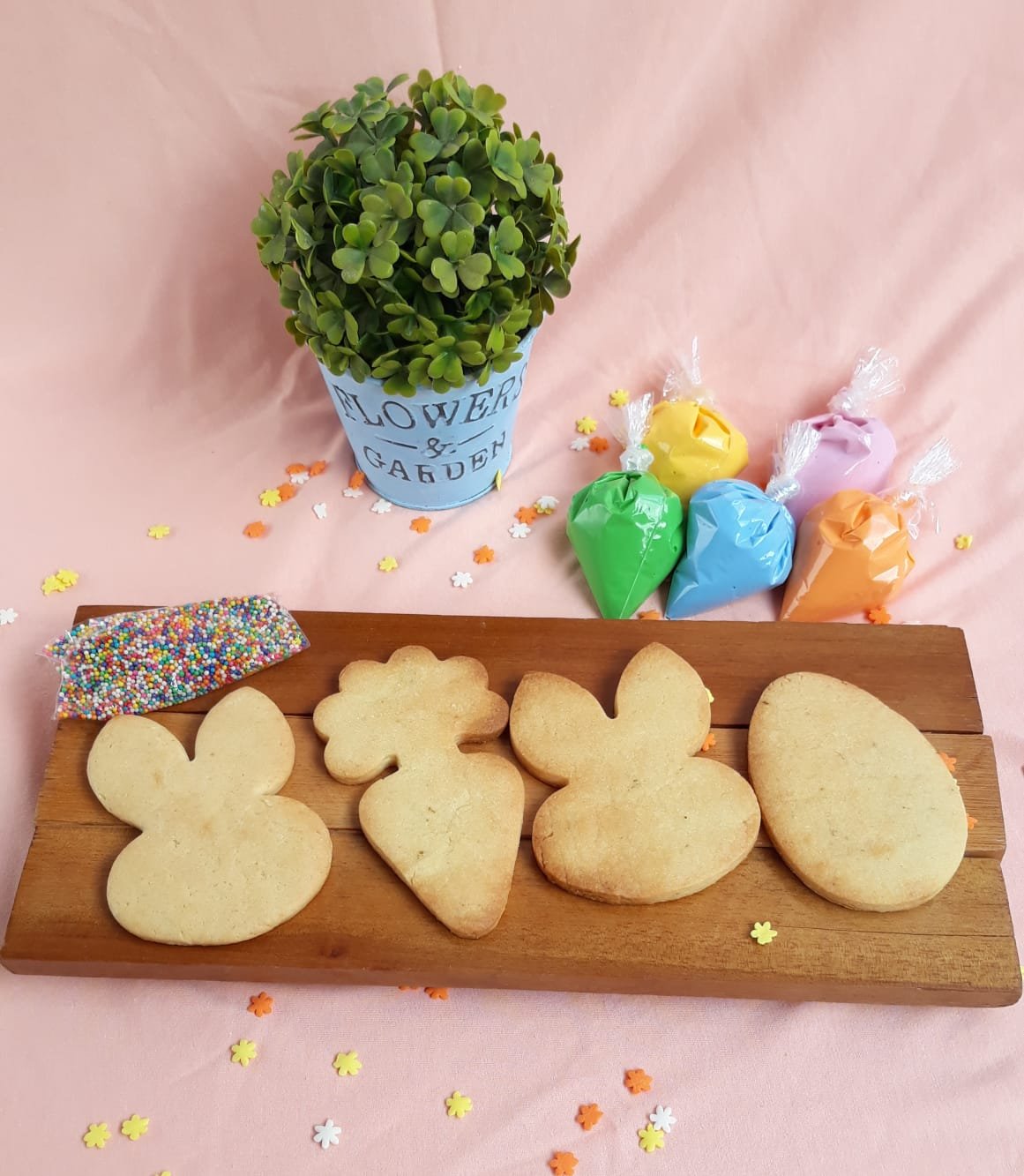 Ainda que saiba produzir outras guloseimas, como bolos e pirulitos, a confeiteira enfatizou os biscoitos no menu. Até mesmo os ovos de Páscoa vão ser feitos de biscoitos.