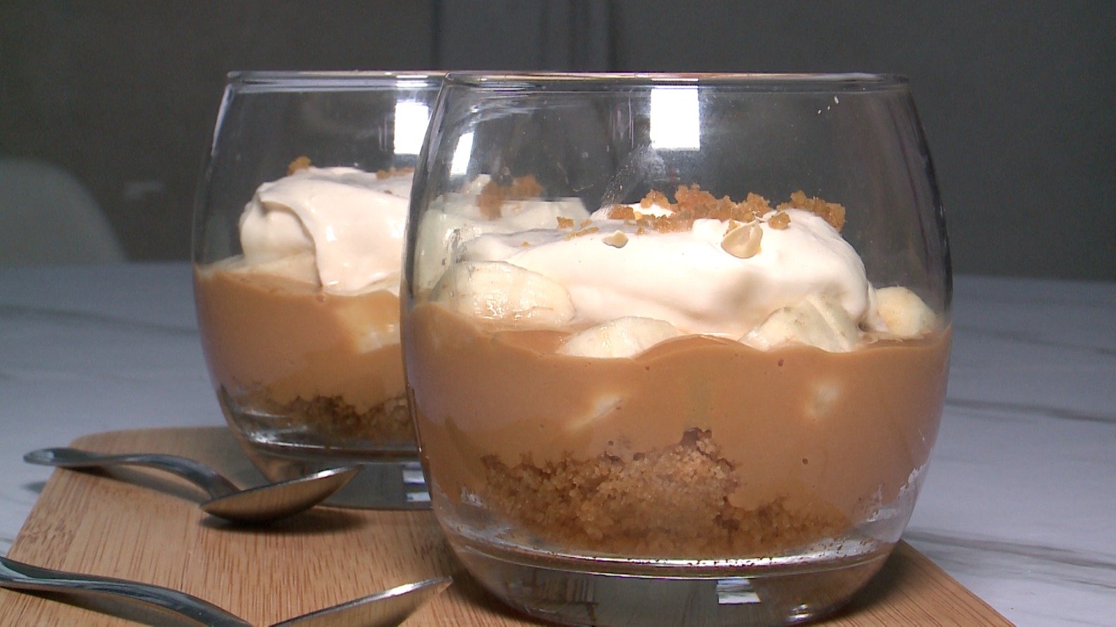 “Trouxe aqui a versão na taça ou no copo e quem quiser para família pode pegar a mesma receita e fazer numa travessa maior”, explica.
