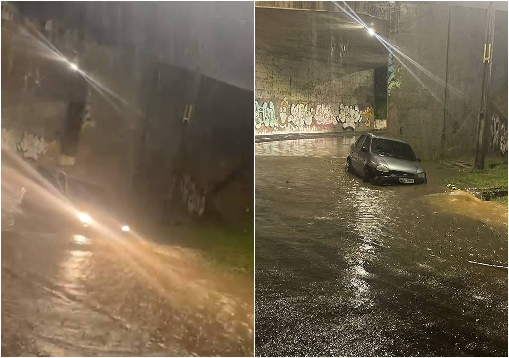 Mãe com duas filhas pequenas são resgatadas de veículo durante chuva em Teresina