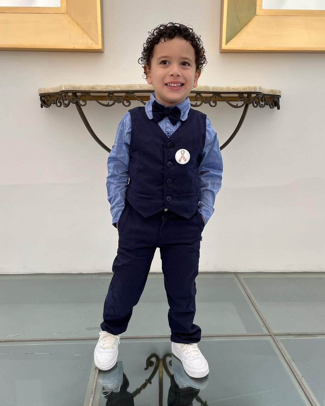 Pedro também teve um dia de esporte fino, para presenciar mais atividades do concurso de beleza. Desta vez com um bottom de representatividade, símbolo do Autismo.