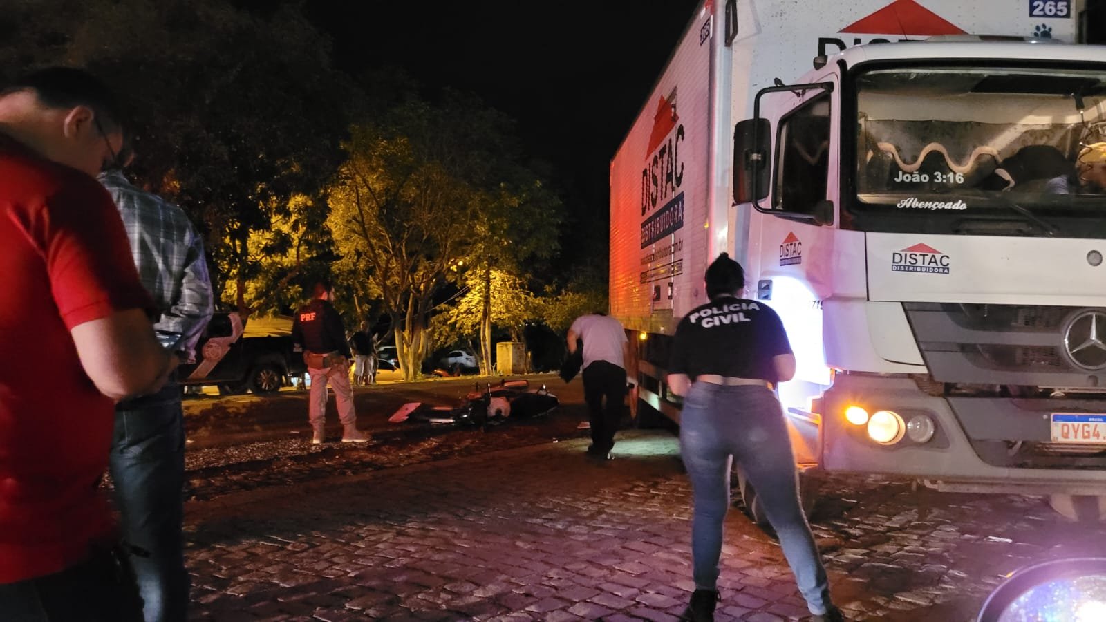 A Polícia Rodoviária Federal (PRF) atendeu a ocorrência e informou o motorista do caminhão realizou uma conversão à esquerda e o motociclista colidiu no veículo transversalmente. A Polícia Civil também foi acionada ao local do acidente.