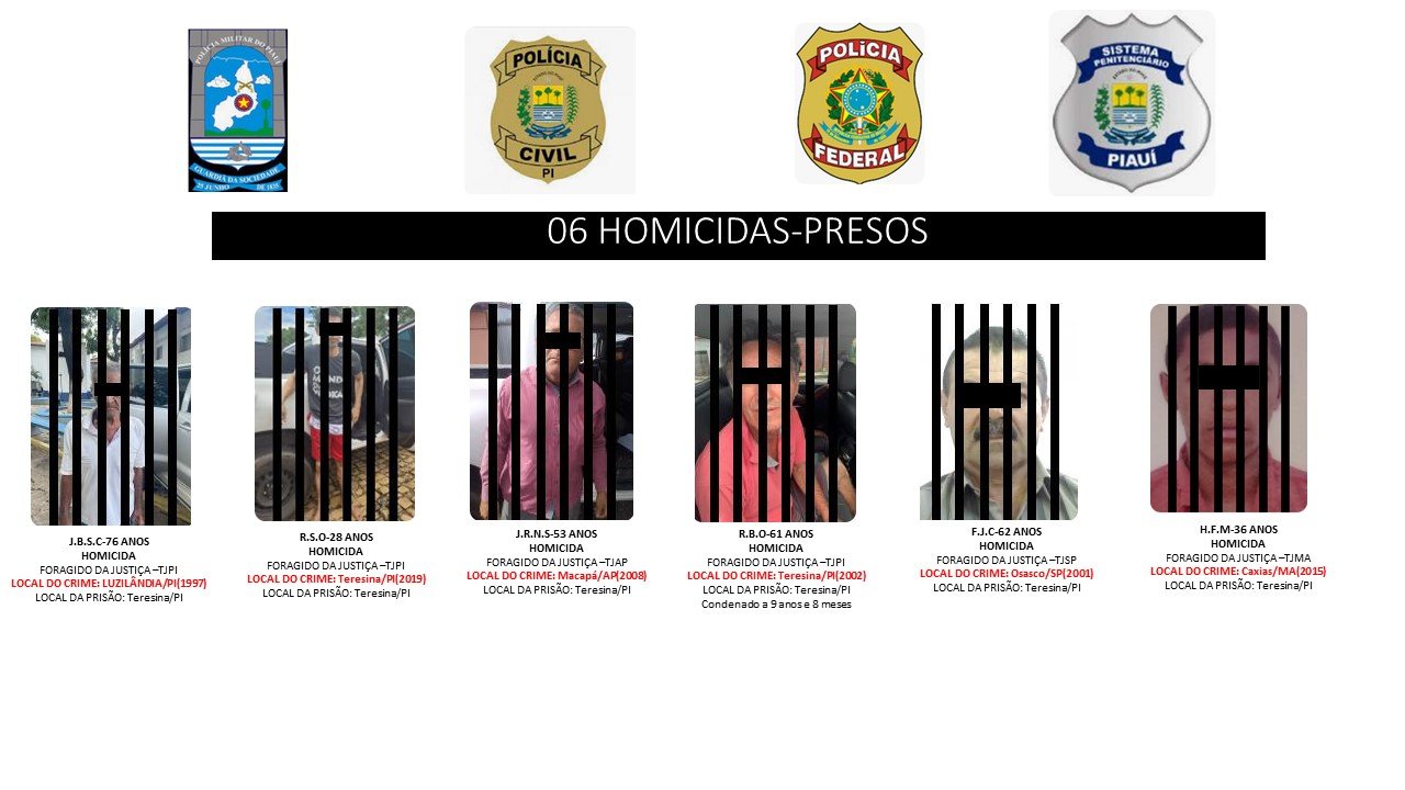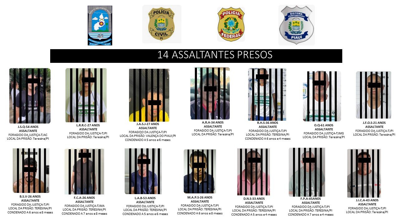 Nesta operação participam: Polícia Federal, Força Integrada de Segurança Pública do Estado do Piauí – Feisp, Polícia Civil por meio da DEPRE e da Delegacia de Capturas, Polícia Militar e Secretaria de Justiça do Estado do Piauí – Sejus.