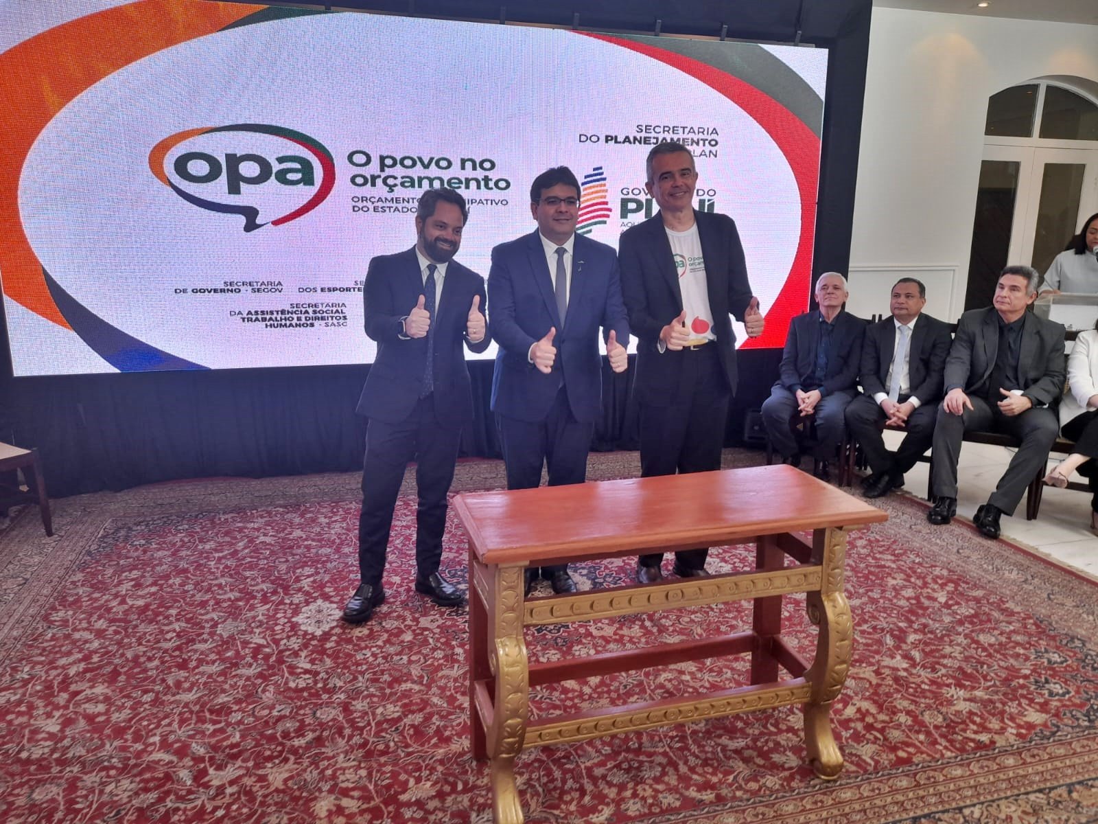 O Governo do Piauí lançou o programa Orçamento Participativo (OPA), nesta segunda-feira (15), em solenidade realizada no Palácio de Karnak. O projeto visa incluir obras escolhidas por movimentos comunitários na Lei Orçamentária Anual (LOA) de 2024.