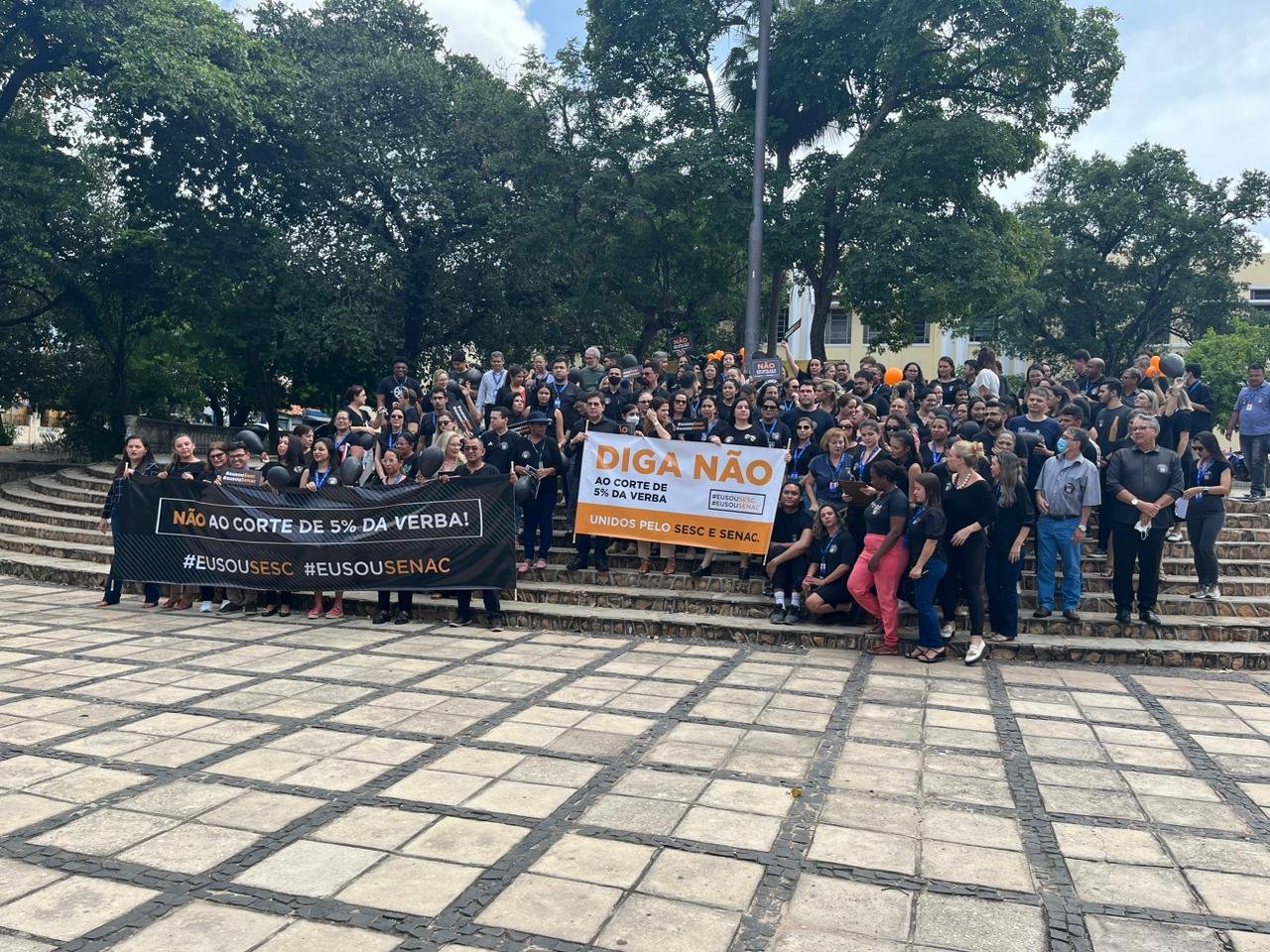 A manifestação contra o desvio de 5% dos recursos do Sesc e do Senac, aprovado na Câmara dos Deputados, por meio dos artigos 11 e 12, inclusos no Projeto de Lei de Conversão (PLV) 09/2023, previsto para ir à votação no Senado Federal, nesta quarta-feira (17).