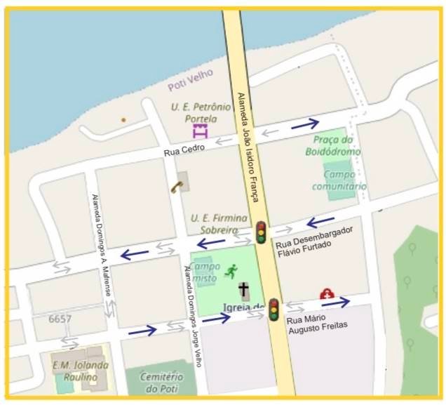 Três ruas que cruzam a Avenida Alameda João Isidoro França, no bairro Poti Velho, zona Norte de Teresina, tiveram o sentido alterado. As mudanças foram implementadas pela Superintendência Municipal de Transporte e Trânsito (STRANS), no sábado (23).