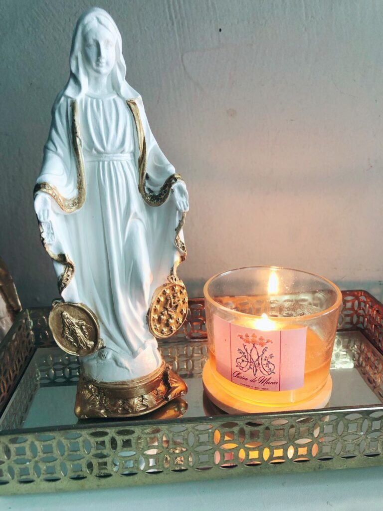 A Maria Rita já confecciona terços e artes sacras através do Amo Terço, onde tudo é feito manualmente. Como sempre tive interesse por trabalhos manuais, durante nossa conversa sobre a necessidade dessas velas, pensamos: por que não produzi-las? Foi assim que surgiu a ideia do Cheiro de Maria”, explicou.