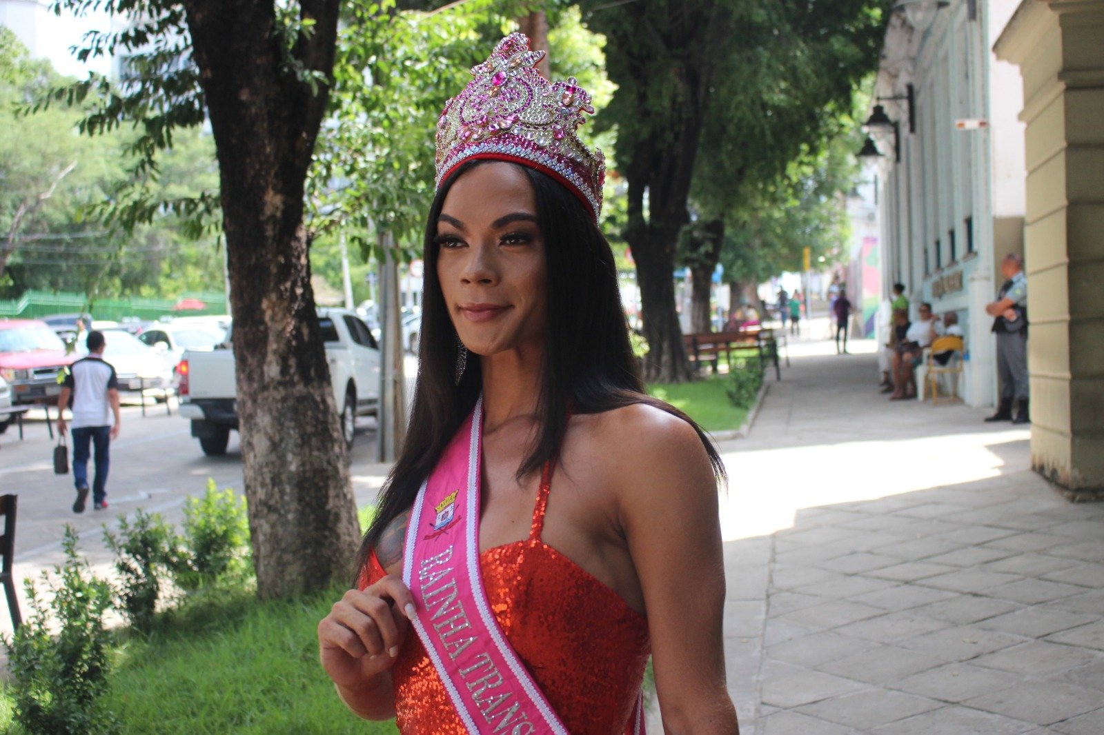 A artista recebeu a faixa da própria amiga, Suellen de Oliveira, Rainha Trans de 2023. “A rainha do ano passado 2023 é muito minha amiga, nós crescemos juntas e ela já vinha dizendo ‘vou passar a faixa para você’ e meus amigos me motivaram muito”, inicia.