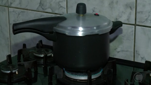 Em uma panela de pressão, adicione um pouco de óleo e, em fogo alto, comece refogando a cebola. Depois coloque o alho e o colorau.