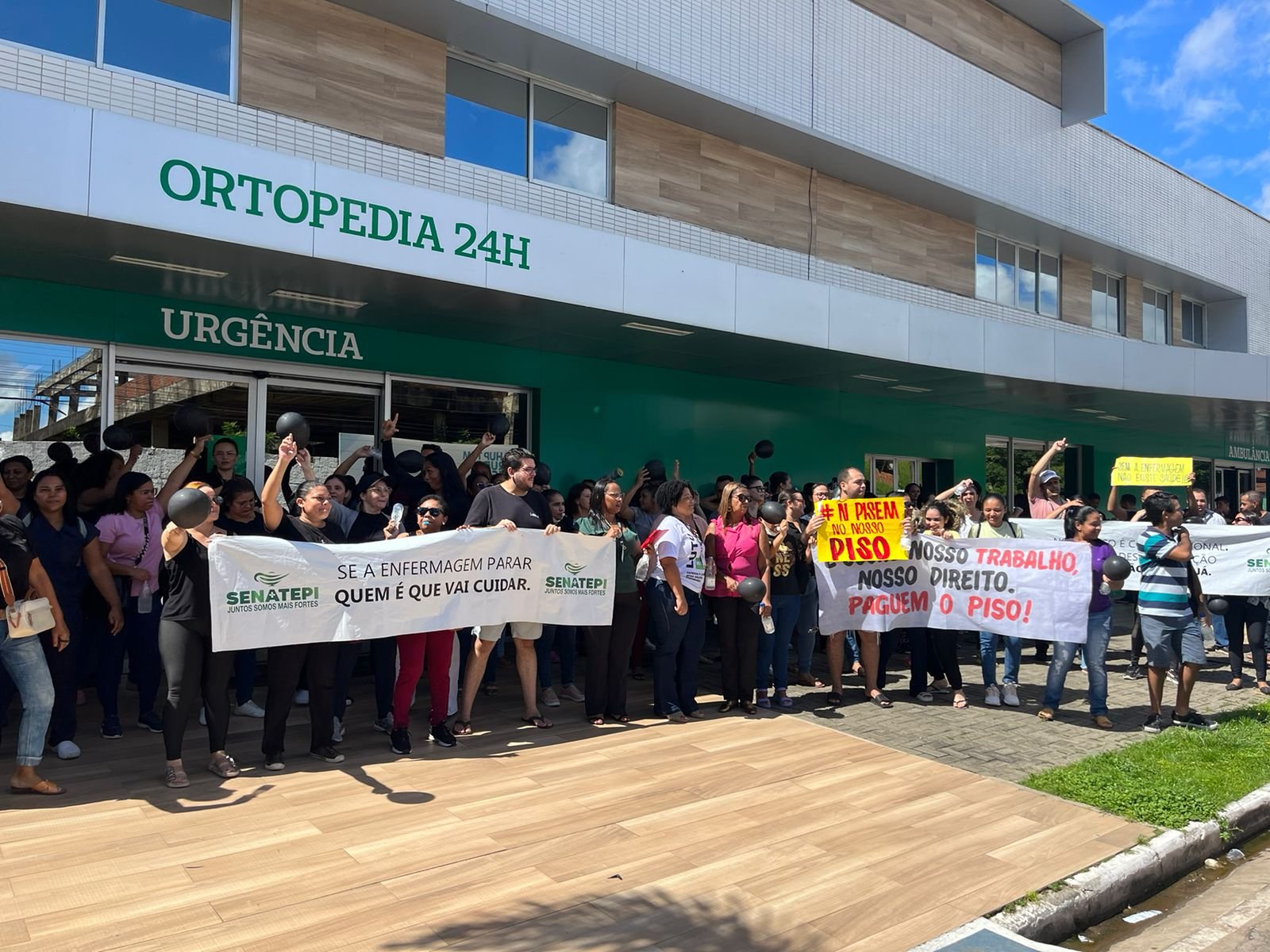 Parte dos técnicos de enfermagem da rede particular de Teresina paralisaram as atividades, na manhã desta segunda-feira (1°). Os profissionais reivindicam o pagamento do piso salarial da categoria, de R$ 2.800, cortado pela metade a partir deste mês de abril.