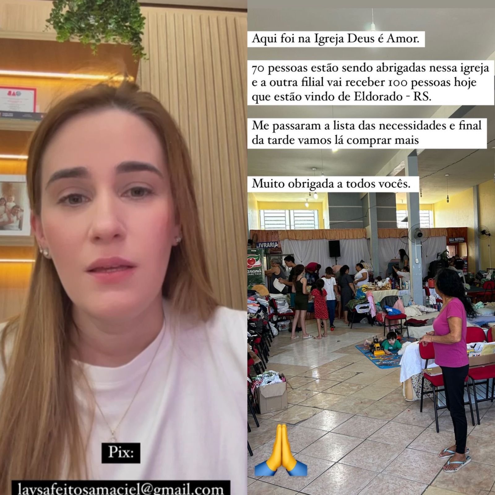 “Por conta das enchentes, o aeroporto e algumas estradas que dão acesso à cidade, estão fechadas, o que compromete a logística do transporte das doações que estão sendo feitas. Pensando nisso, eu disponibilizar meu Pix, para comprar e entregar mantimentos nos abrigos. Eu participo de vários grupos de WhatsApp, então chegam direto atualizações do que estão pedindo, de onde é que tá faltando e do que é que está faltando. Então eu pensei!: vou botar meu Pix, vou comprar as coisas e entregar nos locais que aparecem aqui, que estão pedindo ajuda” disse.