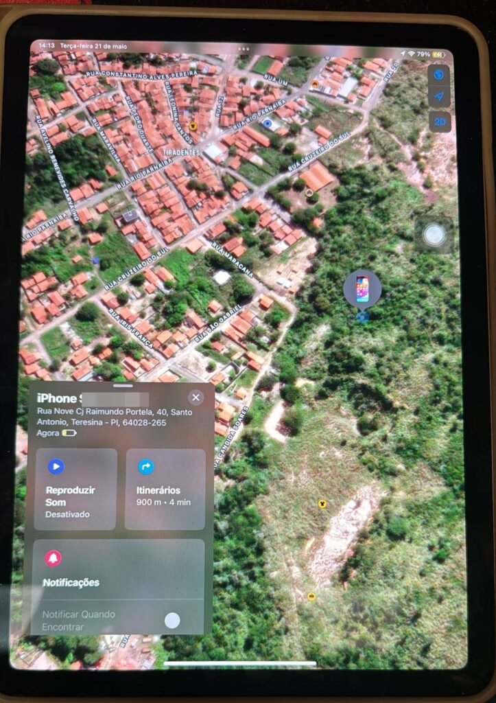 “Quando eu estava prestando as informações para a Polícia Civil, o policial pediu para eu desativar o iCloud. Aí, por curiosidade, fui olhar o buscar e mostrei para o investigador que o celular ainda estava ligado e pelo rastreio, estava próximo aonde fui roubada” contou.