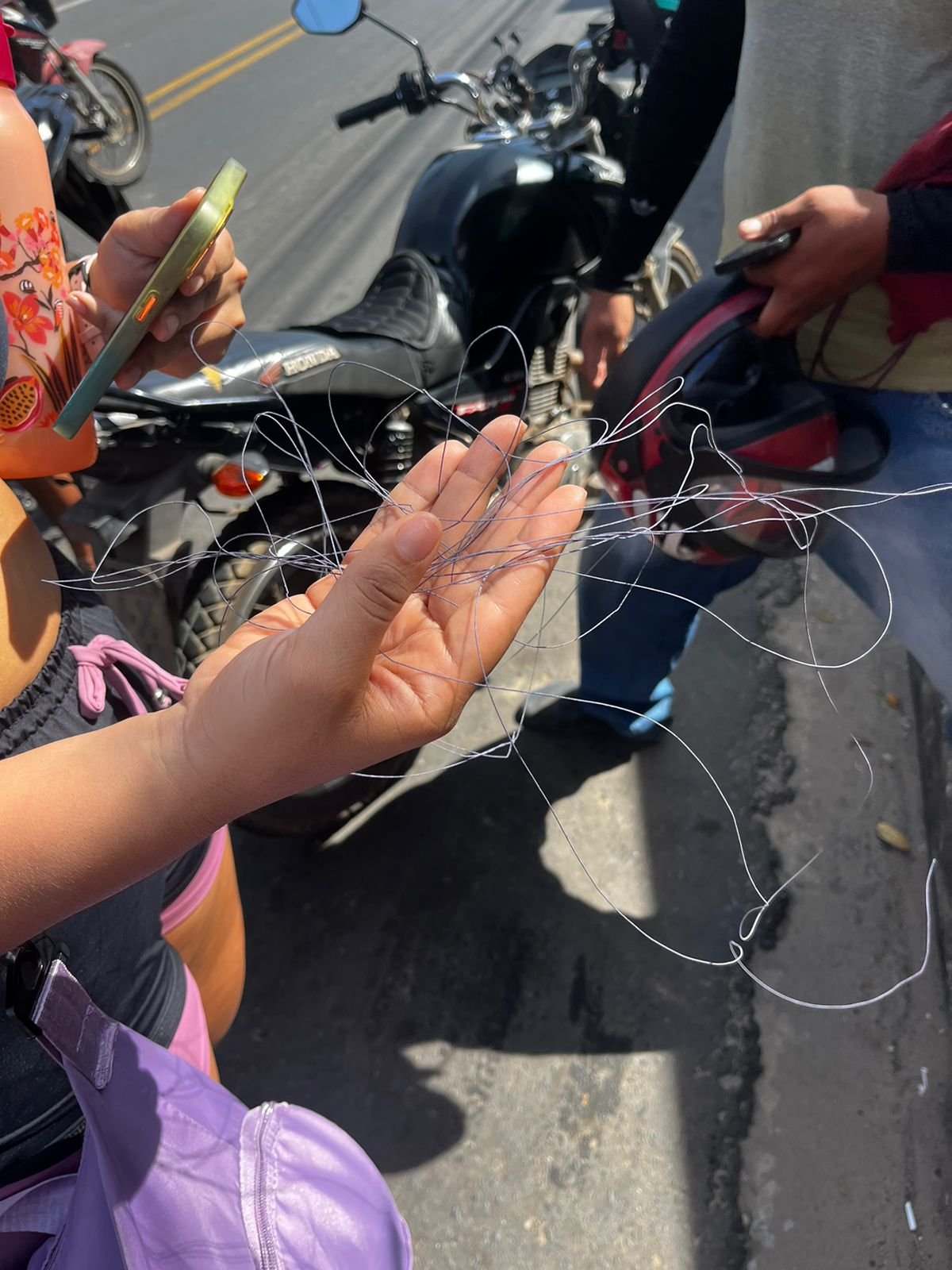 “Quando a gente estava passando pela Rua Rui Barbosa, tinha um senhor na frente com a moto parada. O rapaz (motociclista) que estava comigo disse que tinha uma linha no capacete dele. Nisso, ele já diminuiu a velocidade, foi quando senti algo no meu pescoço. Comecei a gritar e ficar desesperada; a linha estava no meu pescoço”, diz Bárbara.