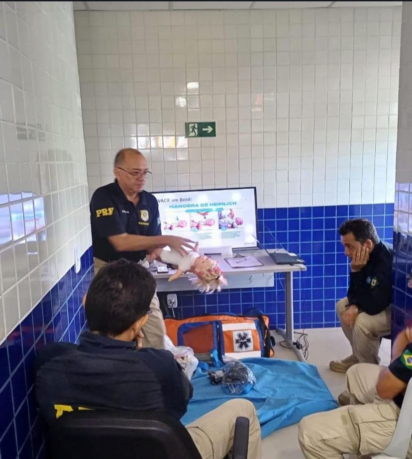 A equipe da PRF informou que, entre os dias 18 e 20 de junho, os policiais participaram de um curso detalhado de atualizações em técnicas de atendimento pré-hospitalar, incluindo salvamento de vítimas de engasgo.