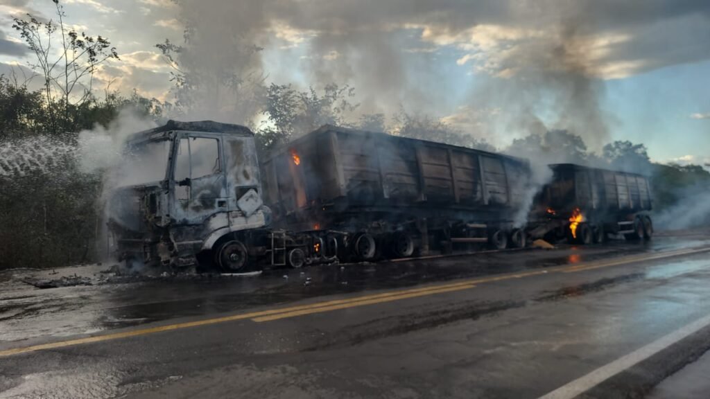 Bitrem carregado de trigo pega fogo em Capitão de Campos