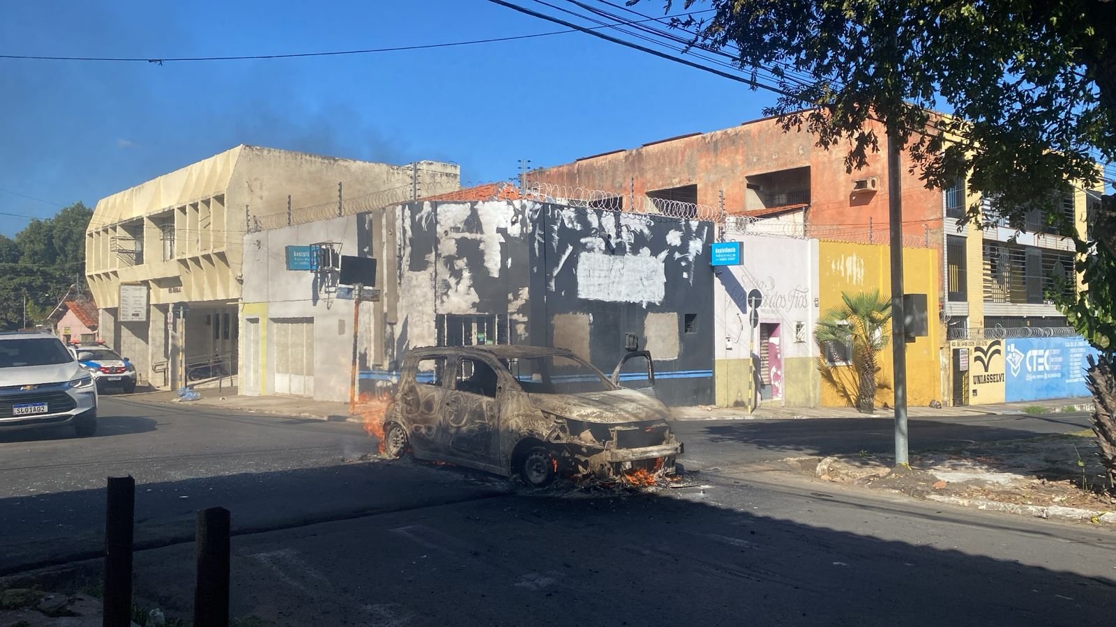 Carro de motorista de aplicativo pega fogo no Centro de Teresina