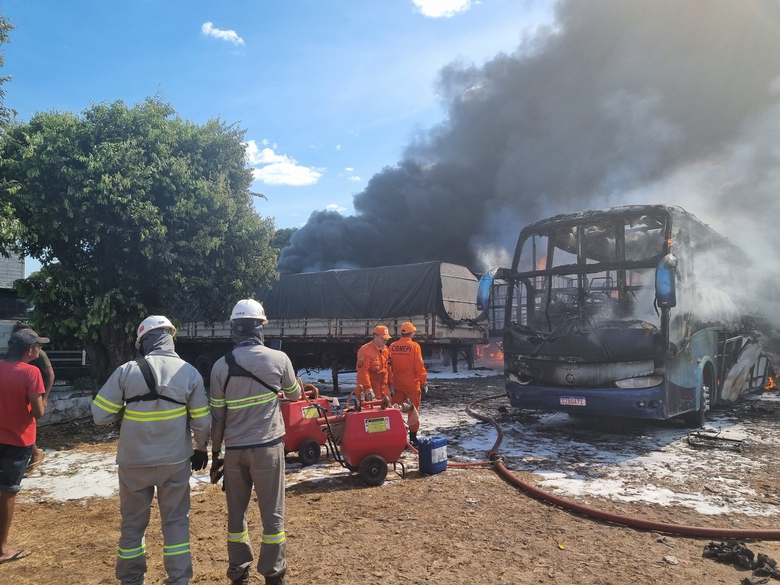Ônibus pega fogo e chamas atingem duas carretas na zona Sudeste de Teresina