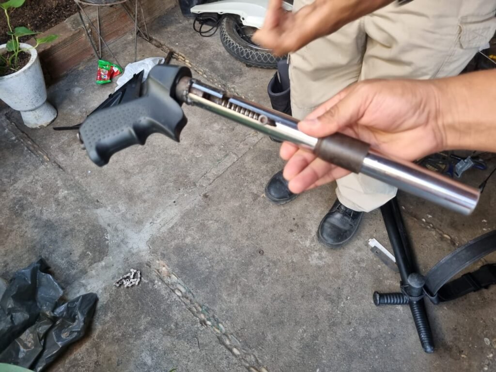 Segundo a Polícia Civil, as equipes chegaram ao local após uma denúncia anônima de desmanche de motos. Na residência foram encontradas duas motocicletas, peças de veículos roubados e uma arma de fogo de fabricação caseira.