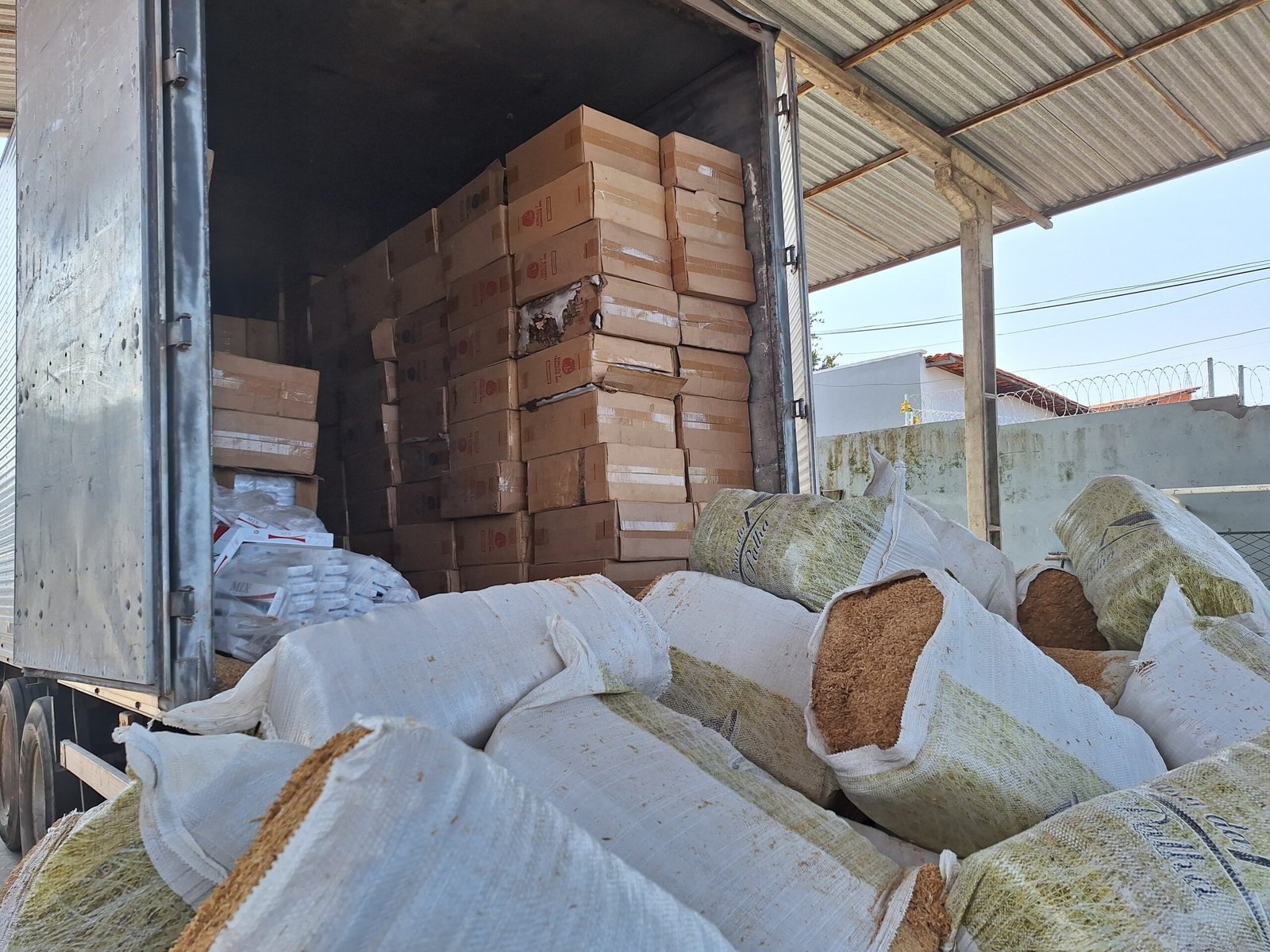 Um caminhão com carga de cigarros foi apreendido, na noite de quarta-feira (21), em Teresina. O motorista fugiu do local da abordagem. O caminhão transportava uma carga de palha, no qual estavam inseridas caixas de maços de cigarros não informados em nota fiscal.