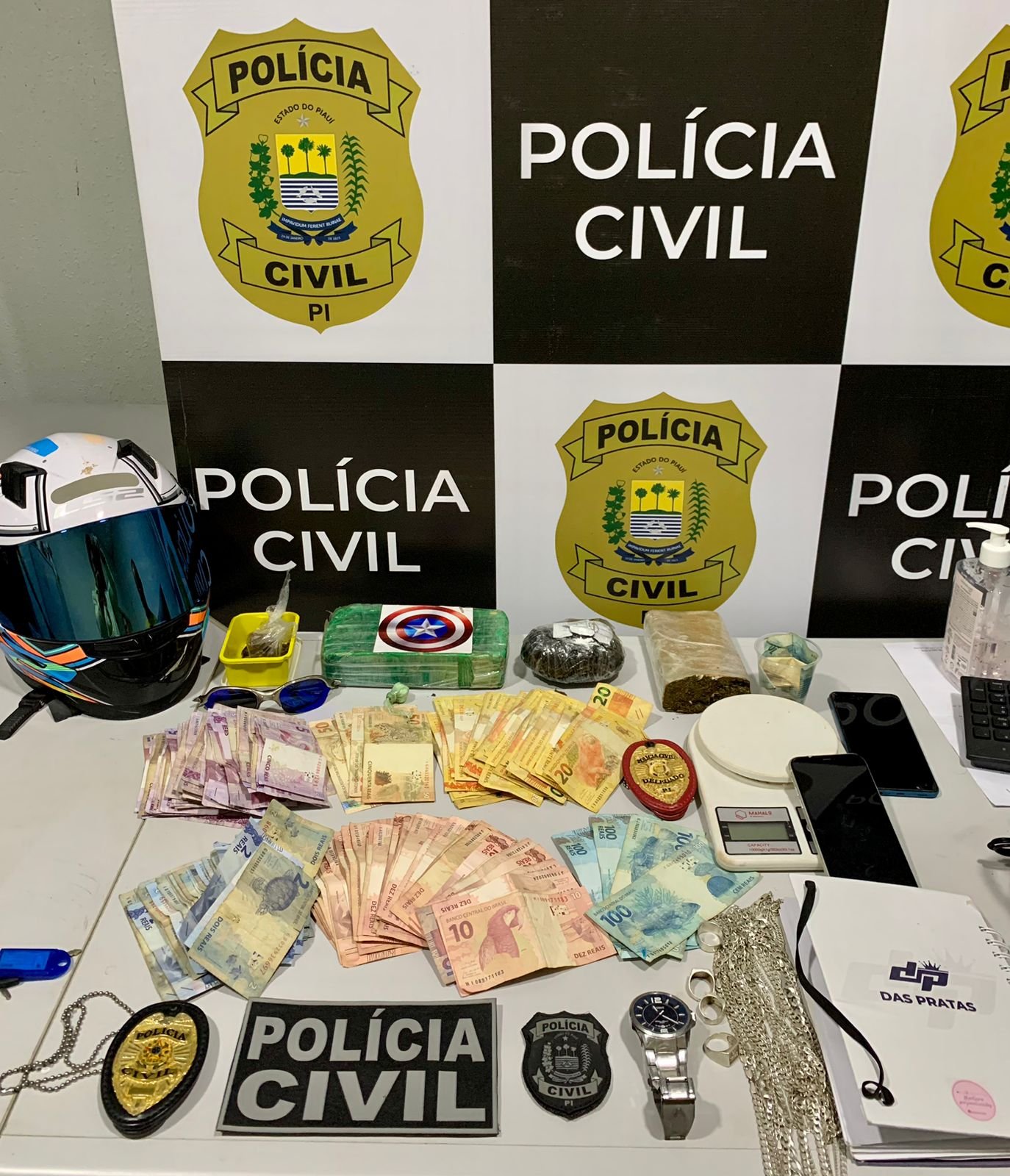 Um homem identificado pelas iniciais M.V.S. foi preso em flagrante na quinta-feira (22), em Oeiras, sob suspeita de tráfico de drogas. Além disso, o investigado também compartilhava vídeos exibindo manobras perigosas em sua motocicleta, promovia rifas e sorteios, e exibia grandes quantias em espécie.
