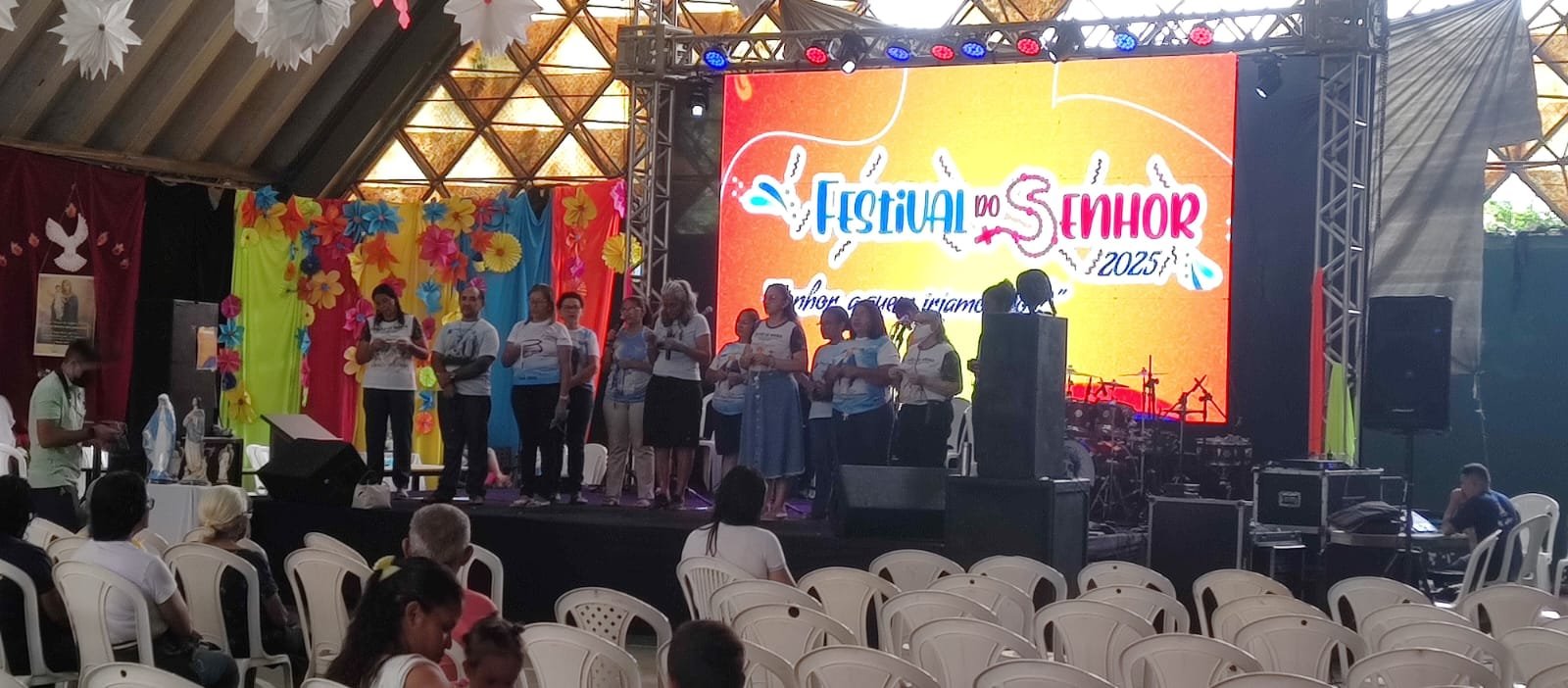 Enquanto os adultos participam das atividades religiosas, as crianças também têm um espaço especial. O Festivalzinho do Senhor promove momentos de evangelização de forma lúdica, com brincadeiras, dinâmicas e música.