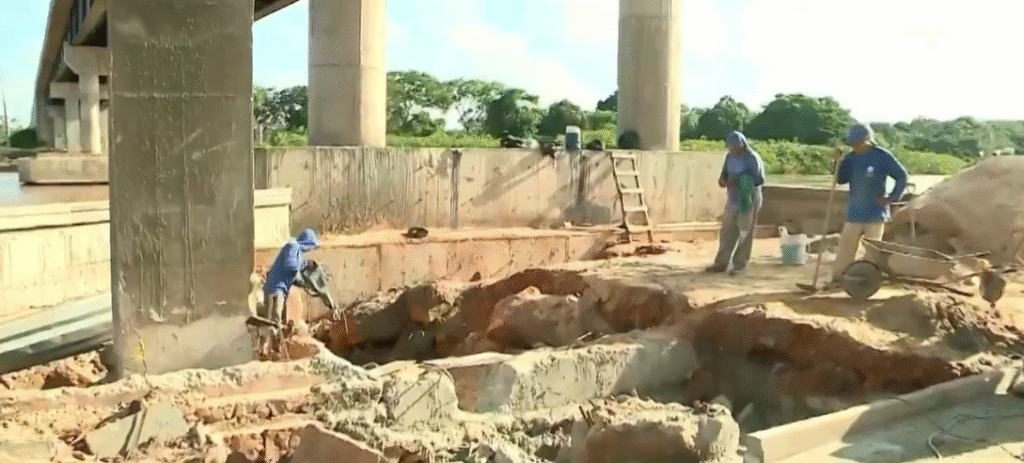 Cratera se abre na pilastra da ponte nova em Parnaíba