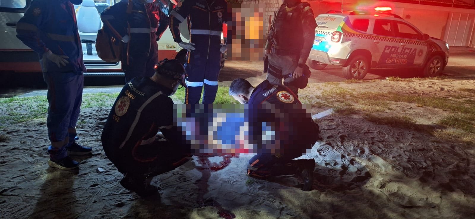 Ao chegarem ao local, os policiais do 27º Batalhão da Polícia Militar (27º BPM) encontraram a vítima deitada no chão com uma perfuração no rosto e outro na região do tórax.