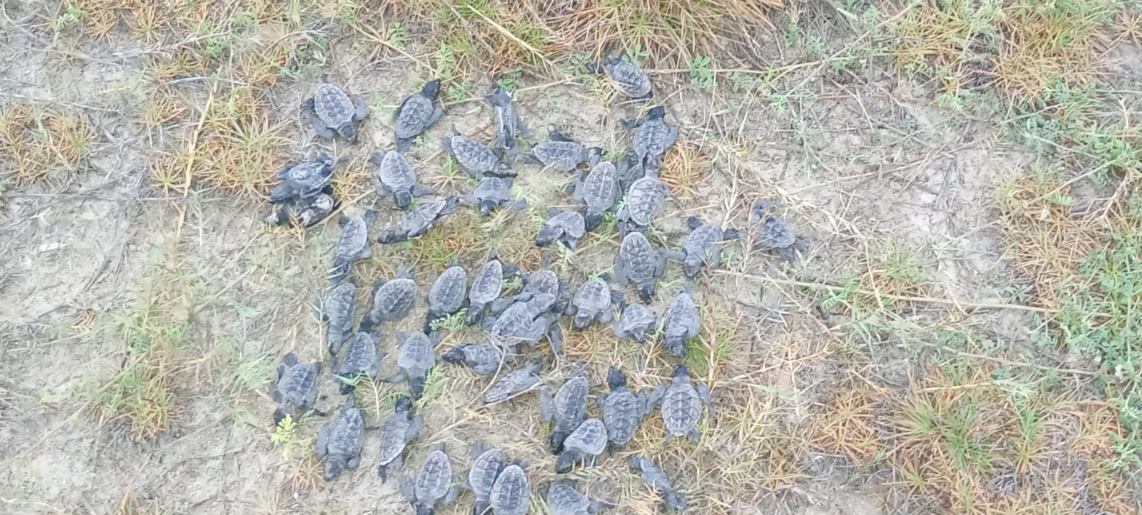 Tartarugas recém-nascidas foram encontradas mortas na praia Peito de Moça, em Parnaíba (PI), após romperem seus ovos e irem em direção contrária ao mar. Um vídeo registrado por moradores mostra 48 filhotes sem vida na orla.