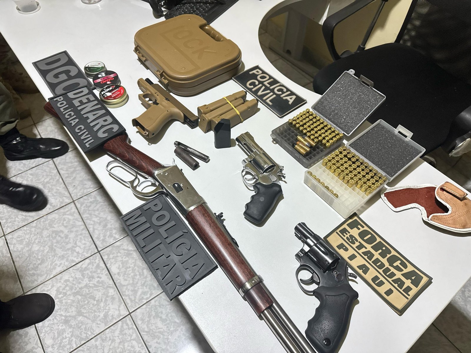 Os presos, armas, drogas e materiais apreendidos foram levados para a Delegacia de Simões, onde serão formalizados os procedimentos legais.