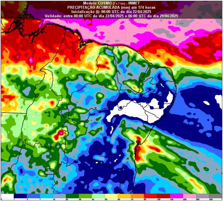 “Mesmo com a redução da intensidade, os volumes de chuva permanecerão acima da média esperada para abril. Enquanto o Litoral e o Norte piauiense enfrentam chuvas, o Sudeste do estado deve registrar temperaturas acima de 38 graus nos últimos dias de abril”, alerta Sara.