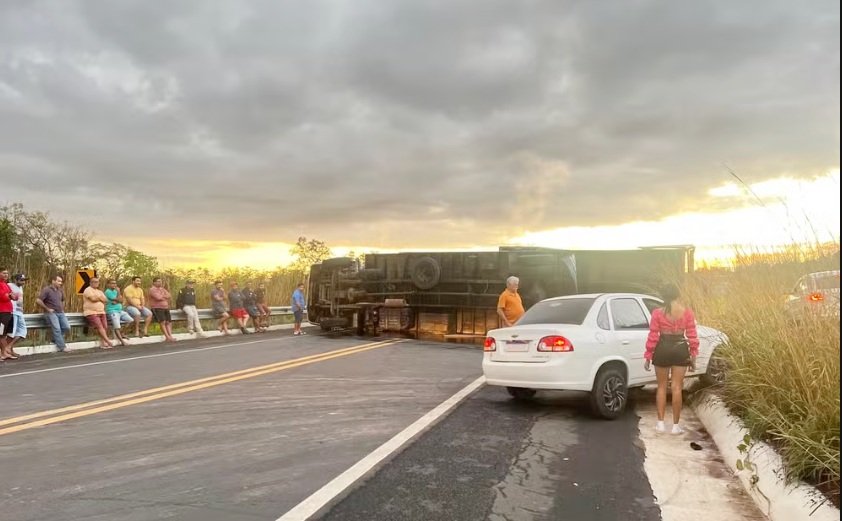 Caminhão tomba e interdita trecho da BR-343 em Altos
