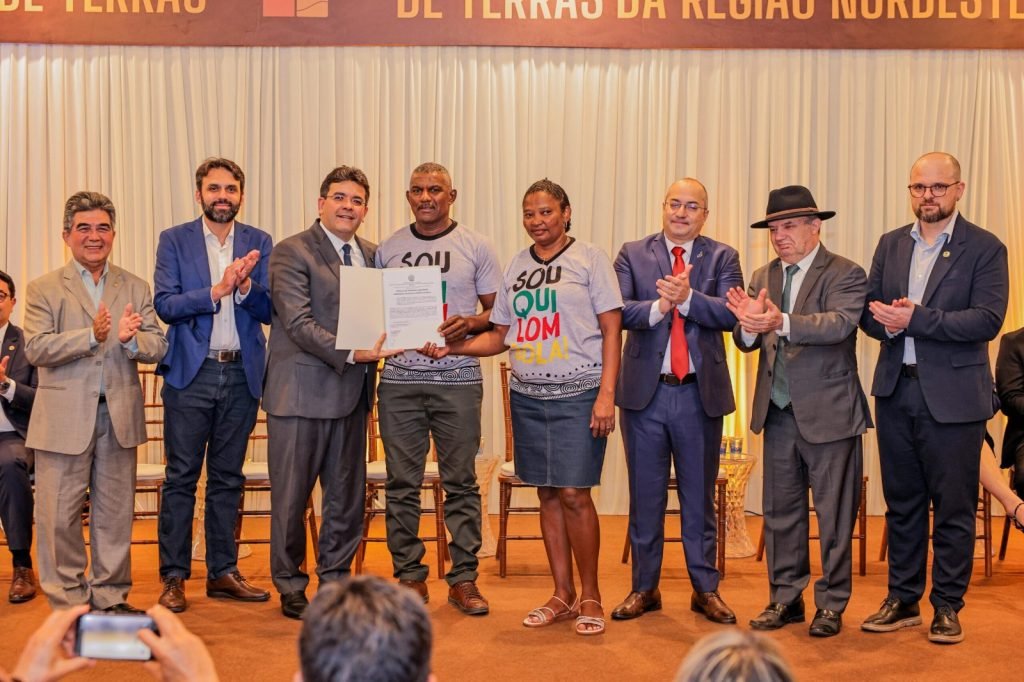 O governador Rafael Fonteles anunciou, durante o II Encontro Nacional dos Órgãos Estaduais de Terra e o I Encontro Técnico dos Órgãos de Terra do Nordeste, que o Piauí está próximo de alcançar a marca de 100 mil títulos de terras concedidos a famílias residentes em áreas urbanas e rurais em todo o estado. Na abertura do evento, na noite desta quarta-feira (03), o chefe do Executivo realizou a entrega de títulos individuais e coletivos a duas comunidades tradicionais e uma rural.