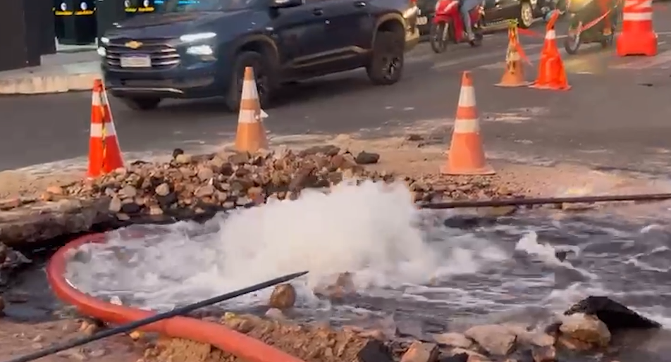 Um vídeo mostra uma grande quantidade de água jorrando dos dutos no centro da cidade. Floriano está sem abastecimento há mais de 24 horas.