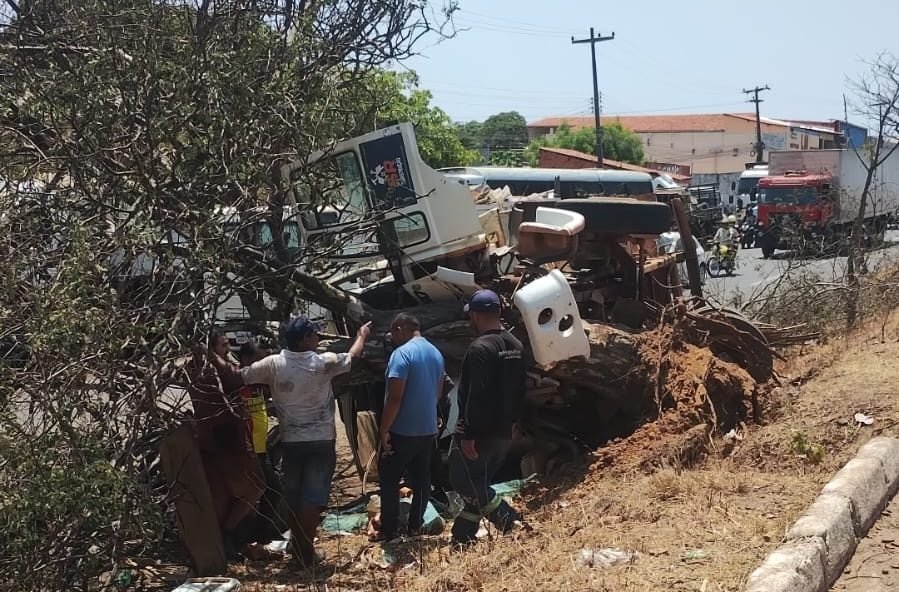 Motorista fica ferido após perder controle de caminhão e colidir com árvore na BR-316, em Teresina