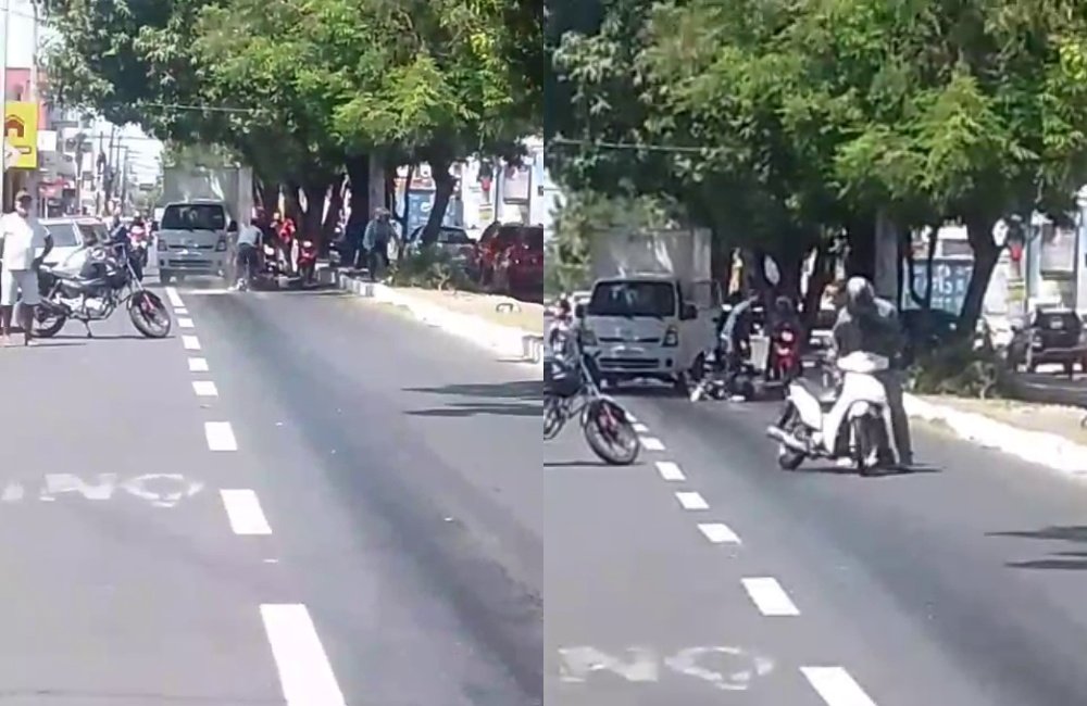 Derramamento de óleo causa queda de motoqueiros e congestionamento na Av. Joaquim Nelson