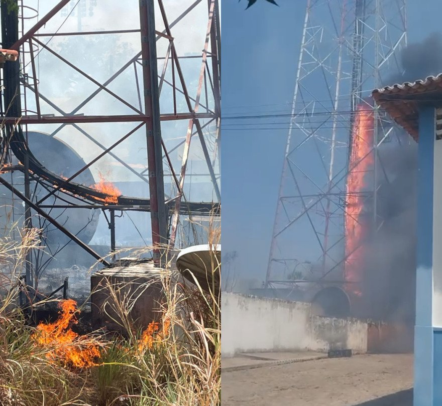 Vídeo: torre de telefonia pega fogo em Guadalupe e brigada investiga se incêndio foi criminoso