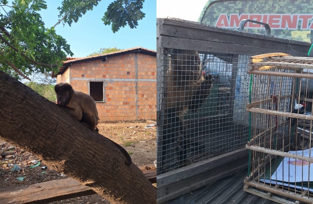 Macaco-prego e aves silvestres são resgatados de cativeiro no interior do Piauí