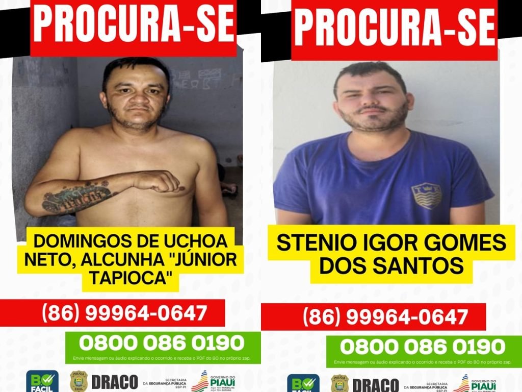 Domingos de Uchoa Neto, vulgo “Júnior Tapioca, e Stenio Igor Gomes dos Santos são os suspeitos procurados pela polícia