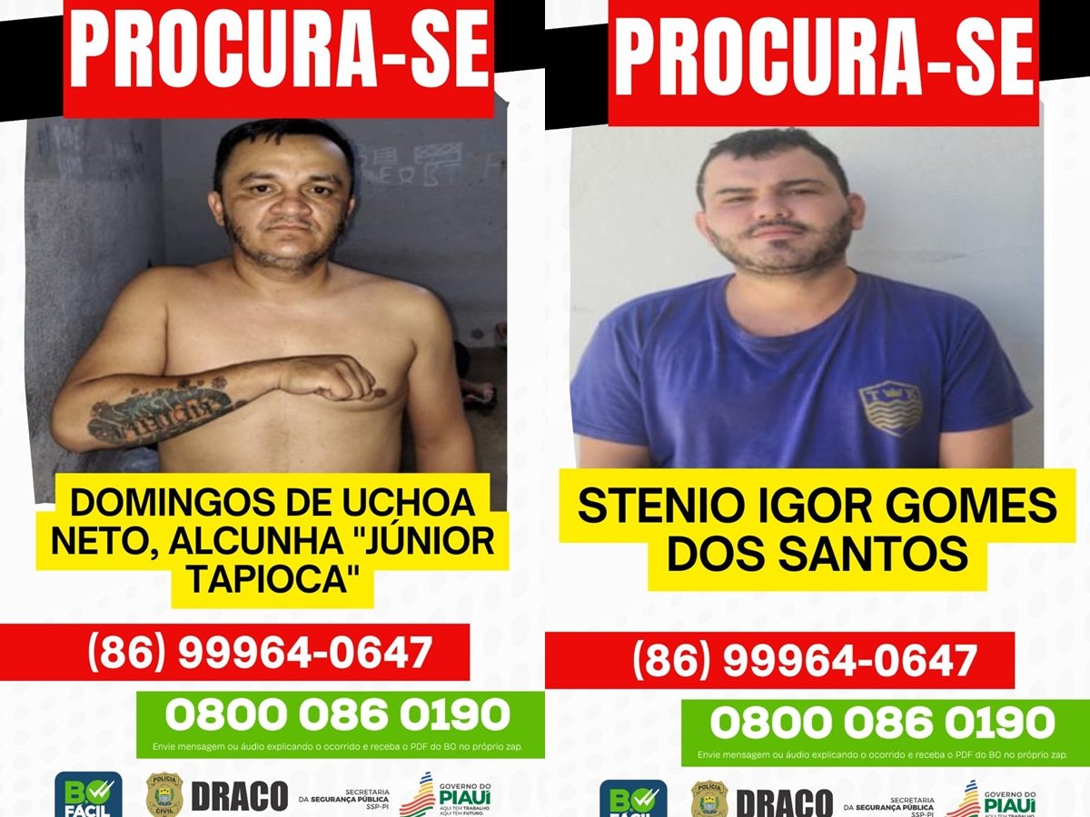 A Polícia Civil do Piauí (PCPI) divulgou, na manhã desta sexta-feira (19), a imagem de dois foragidos de operação, deflagrada na tarde de quinta-feira (18), em Pedro II (PI).