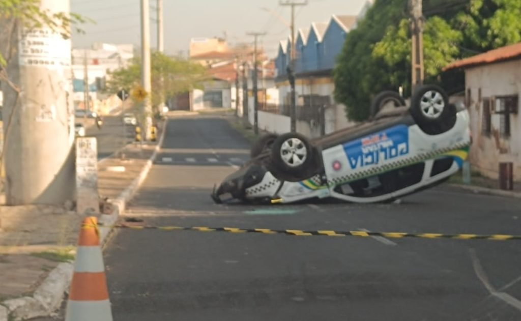 Policiais ficam feridos após capotamento de viatura em Teresina; veja vídeo