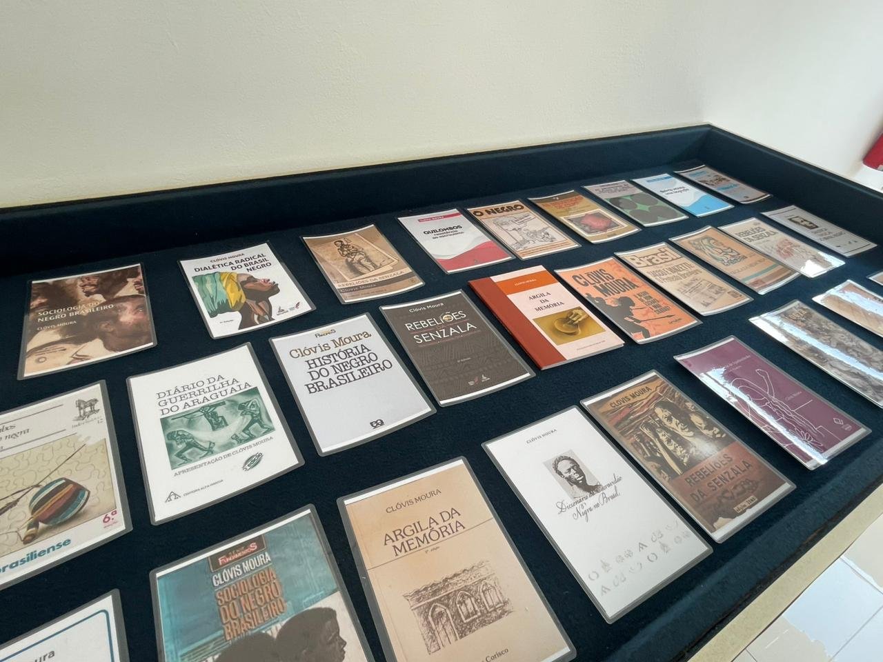 O espaço reúne quadros biográficos, lista de obras, trechos de poemas, fotos de momentos marcantes e uma coleção dos principais livros de Clóvis Moura.