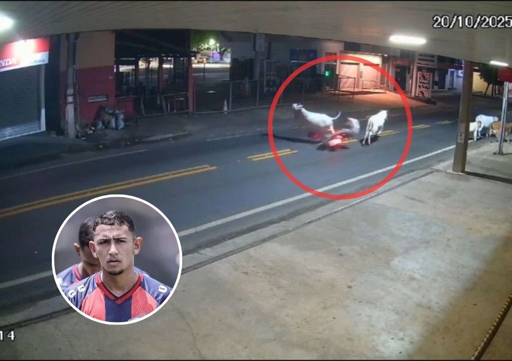 Vídeo mostra momento em que jogador de futebol colide com vaca e morre em Altos