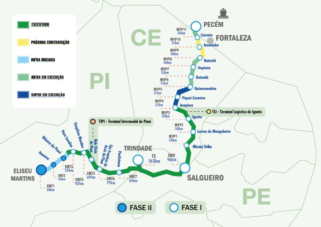 A TSLA ressaltou que “a fase 1 será finalizada em 2027, conectando a ferrovia com o Porto de Pecém (CE). E o trecho de 151 km, que passa por Eliseu Martins e Paes Landim, no Piauí, será retomado no início do ano que vem e a previsão de conclusão é para 2028, um ano e meio antes do previsto”.