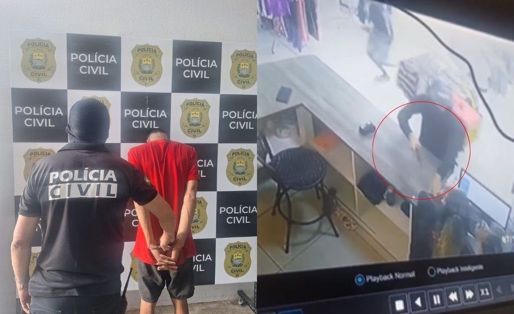 Imagens de câmeras de segurança registraram a ação do suspeito e de seu comparsa. A dupla fingiu ser entregadora de alimentos para entrar no estabelecimento. De forma agressiva, eles renderam duas funcionárias e levaram suas joias. Antes de fugir, um dos assaltantes arremessou o celular de uma das vítimas no chão.