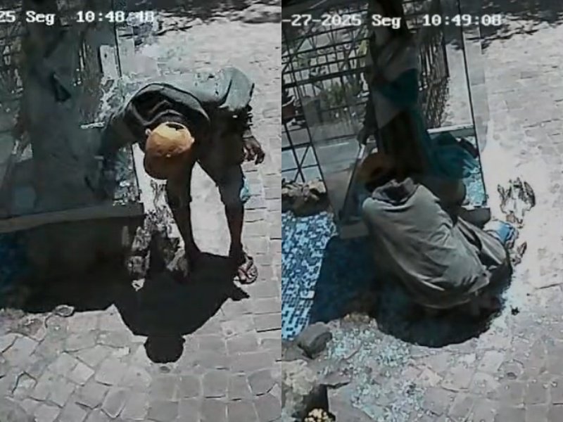 “A gruta é aberta ao público e, infelizmente, não tem segurança, mas tem câmera. Ele se aproveitou que não tinha muita gente, usou uma pedra para rachar o vidro e levar uma quantia pequena, aproximadamente 30 reais”, disse o sargento Evandro, comandante do Grupamento.