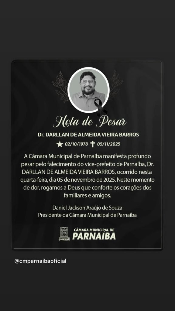 O vice-prefeito de Parnaíba, Darllan Barros (PP), faleceu na noite dessa quarta-feira (5), no Hospital Estadual Dirceu Arcoverde (Heda).