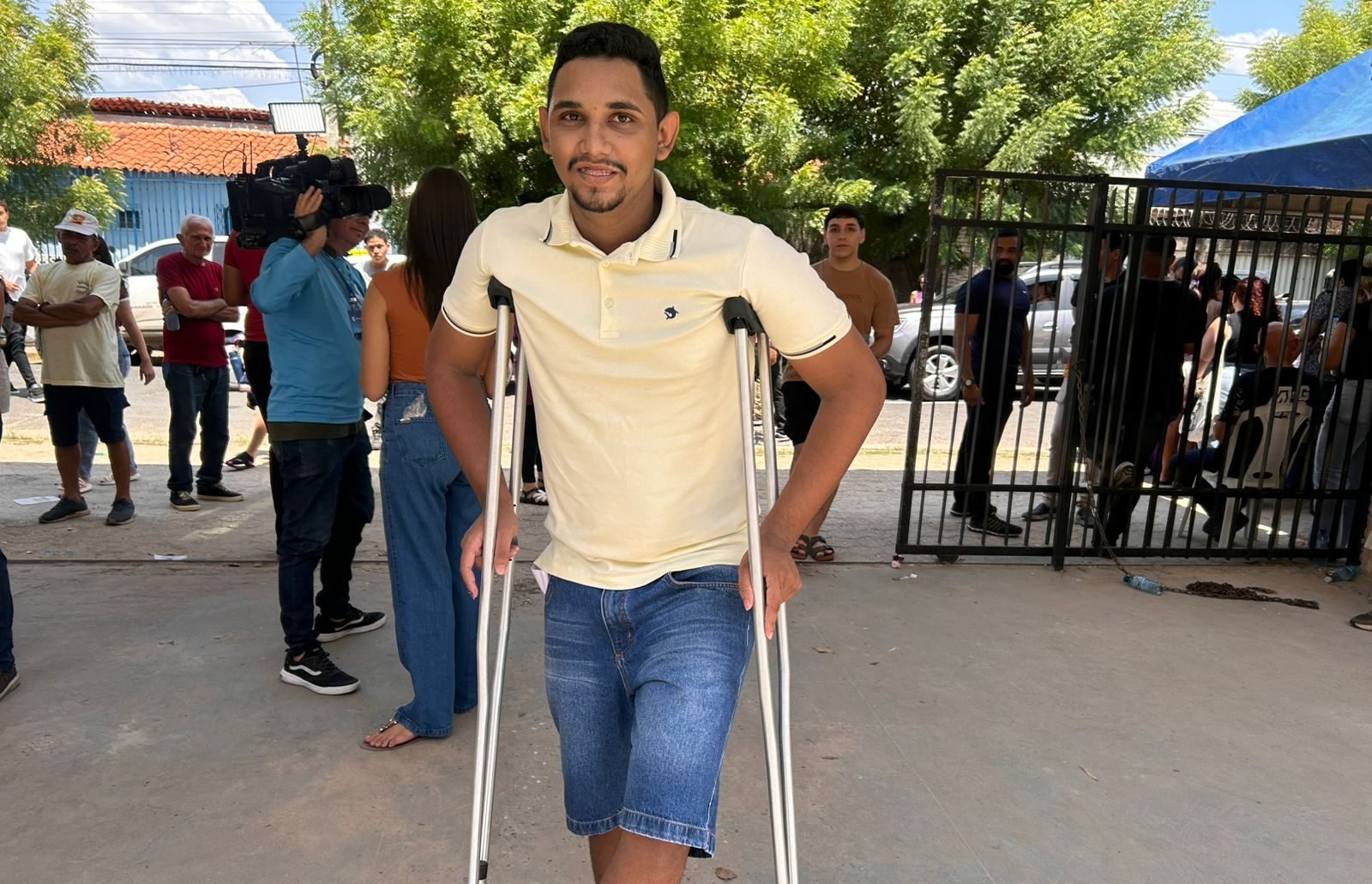 De muletas e com a perna imobilizada, Francisco foi fazer o primeiro dia de prova na Universidade Estadual do Piauí (Uespi), em Teresina.