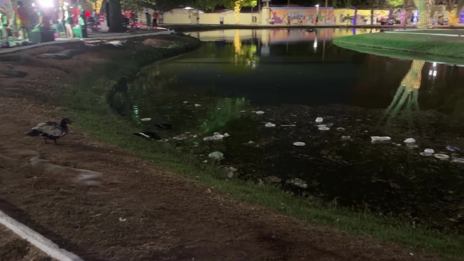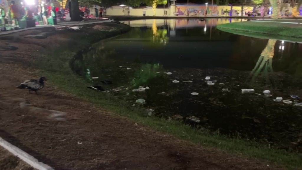 Um alerta de um telespectador do programa Bom Dia Piauí chamou a atenção para a situação da lagoa do Parque da Cidadania, um dos principais pontos de convivência de Teresina. Imagens gravadas na noite deste domingo (16) mostram o local repleto de lixo, o que está prejudicando os patos que vivem na lagoa.