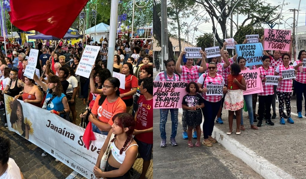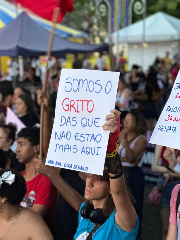 Manifestantes protestaram na tarde deste domingo (7) em Teresina-PI e Parnaíba-PI, no litoral do estado, contra o aumento dos casos de feminicídio. A mobilização nacional ocorreu em diversas cidades do país, organizada por coletivos, movimentos sociais e outras organizações.